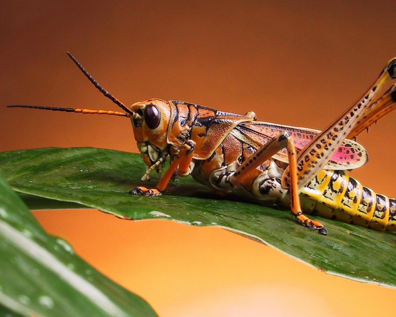 Сверчек на листе обои для рабочего стола, картинки, фото, 1280x1024. | ||||||||||||||||