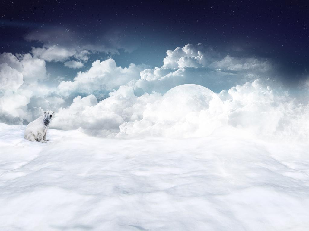 Белый медведь, снег, луна, облака обои для рабочего стола, картинки, фото, 1024x768. | ||||||||||||||||||||||