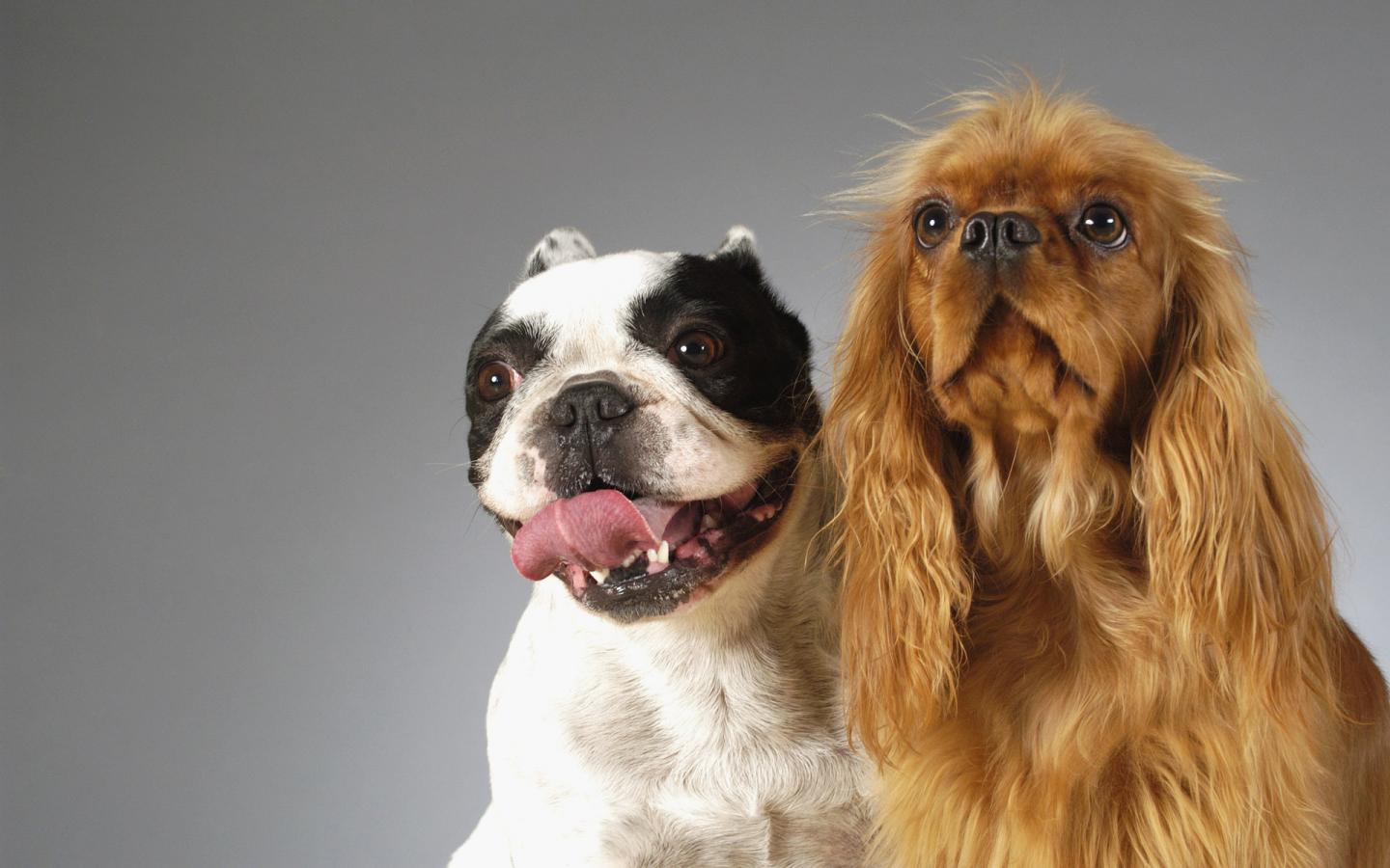 Серый фон, пара, породы, взгляд, язык обои для рабочего стола, картинки, фото, 1440x900. | ||||||||||||||||||||||