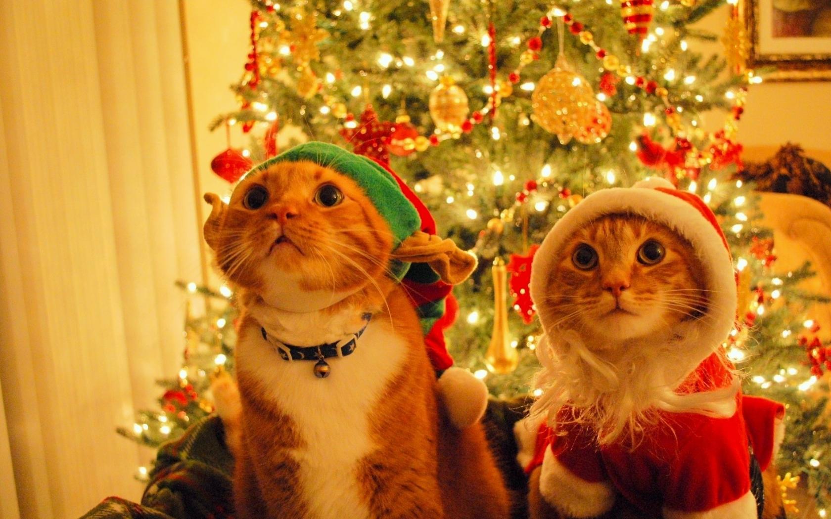 Новогодние коты обои для рабочего стола, картинки, фото, 1680x1050. | ||||||||||||||||
