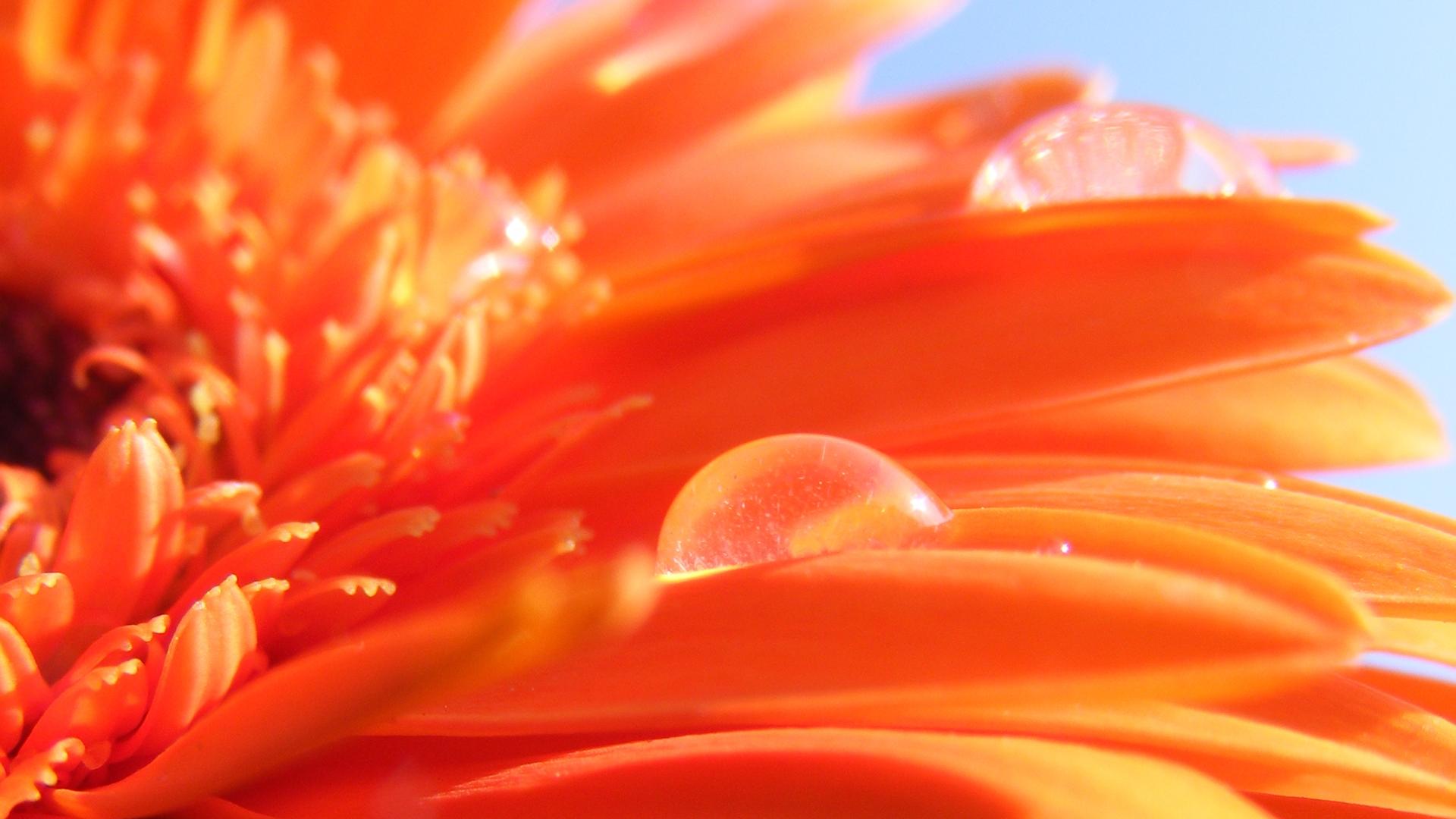 Капля росы на оранжевом цветке обои для рабочего стола, картинки, фото, 1920x1080. | ||||||||||||||||||||||