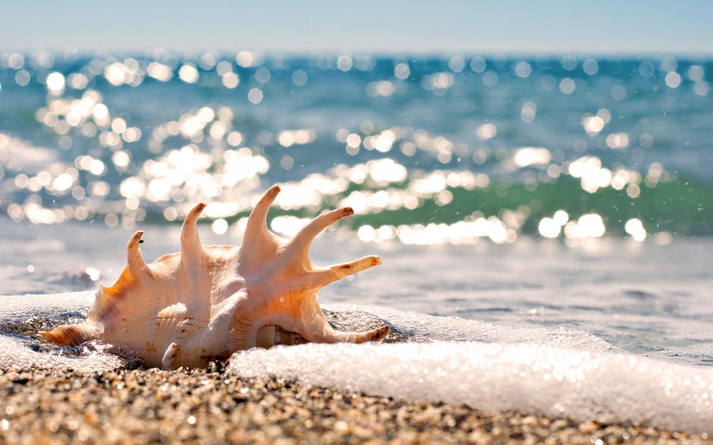 Ракушка, берег, камни, пляж, море, фокус обои для рабочего стола, картинки, фото, 1440x900. | ||||||||||||||||