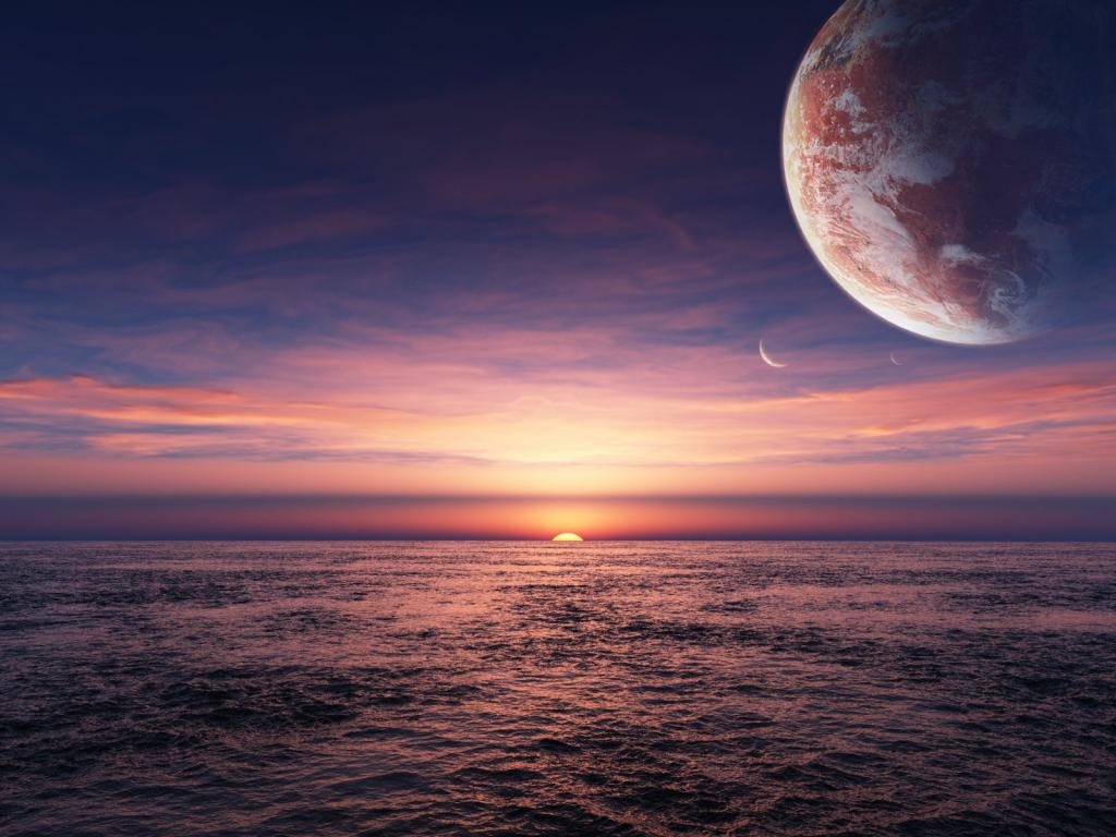 Солнце заходящее в океан обои для рабочего стола, картинки, фото, 1024x768. | ||||||||||||||||||||||