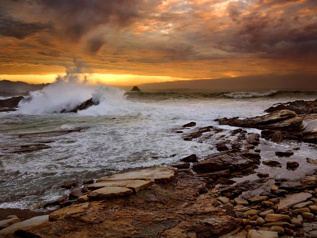 Волны бьются о берег обои для рабочего стола, картинки, фото, 1024x768. | ||||||||||||||||