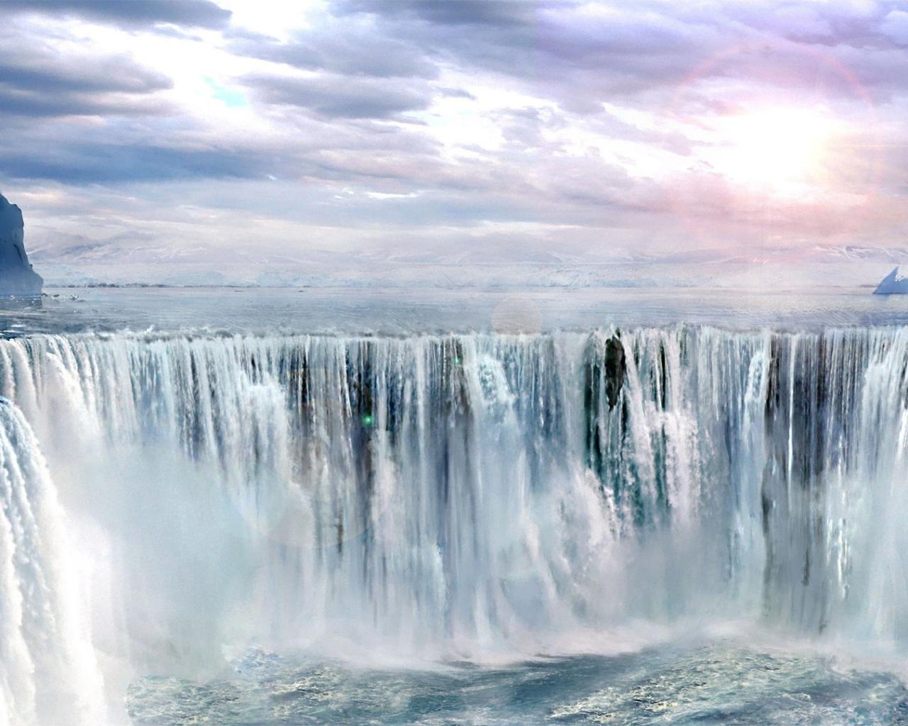Небо, море, водопад обои для рабочего стола, картинки, фото, 1280x1024. | ||||||||||||||||