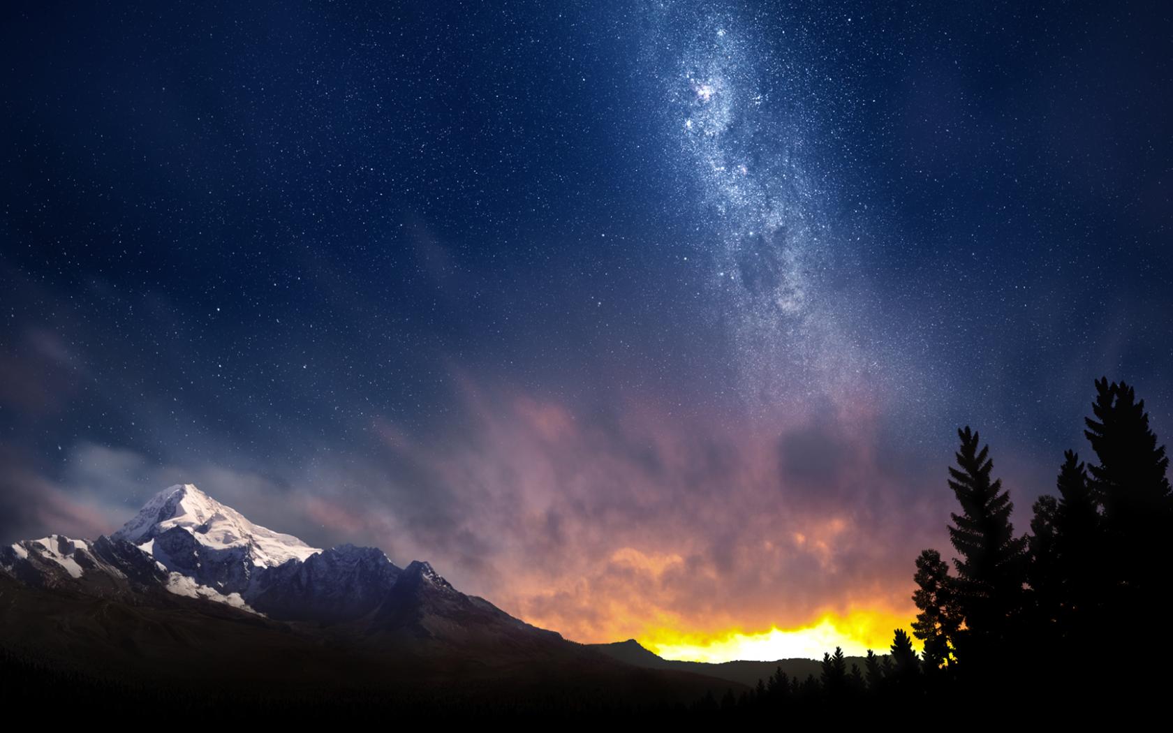 Сияние над лесом обои для рабочего стола, картинки, фото, 1680x1050. | ||||||||||||||||