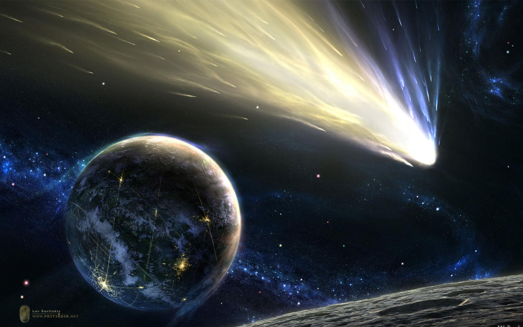 Камета возле Земли обои для рабочего стола, картинки, фото, 1680x1050. | ||||||||||||||||