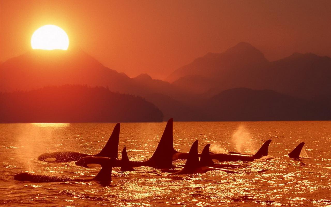 Касатки на закате обои для рабочего стола, картинки, фото, 1280x800. | ||||||||||||||||