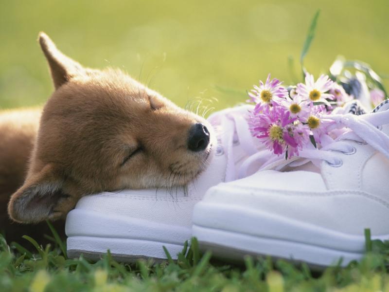 Щенок заснувший на белых кросовках обои для рабочего стола, картинки, фото, 800x600. | ||||||||||||||||