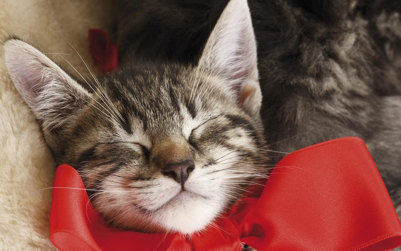 Спящий кот с бантом обои для рабочего стола, картинки, фото, 1280x800. | ||||||||||||||||
