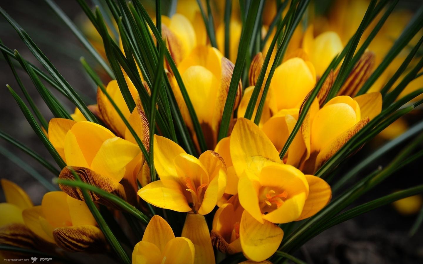 Крокусы, цветы, желтые обои для рабочего стола, картинки, фото, 1440x900. | ||||||||||||||||